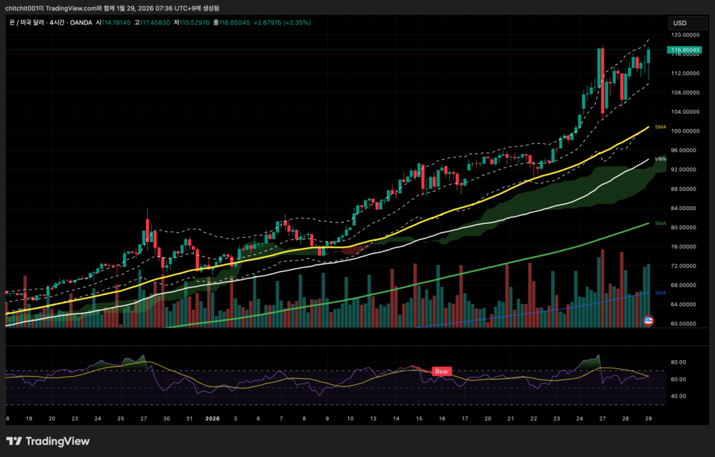 최근 금과 은이 연일 신고가를 경신하며 치솟고 있습니다. 아쉽게도 저는 단 한푼도 산게 없는데요. 문득 제가 좋아하는 차트로 금과 은을 보면 어떨까 싶어 포스팅 합니다. 지금 진입을 하는 것은 대단한 용기가 필요할텐데요. 만약 매수를 한다면 언제하는게 좋을지 차트를 보고 판단하면 어떨까요?