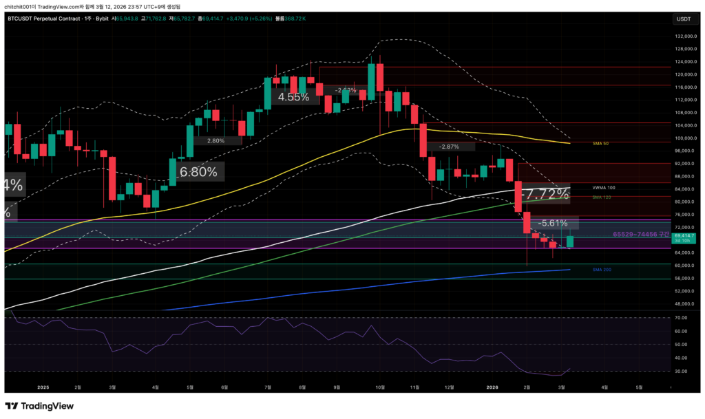 비트코인 1주일 봉입니다.