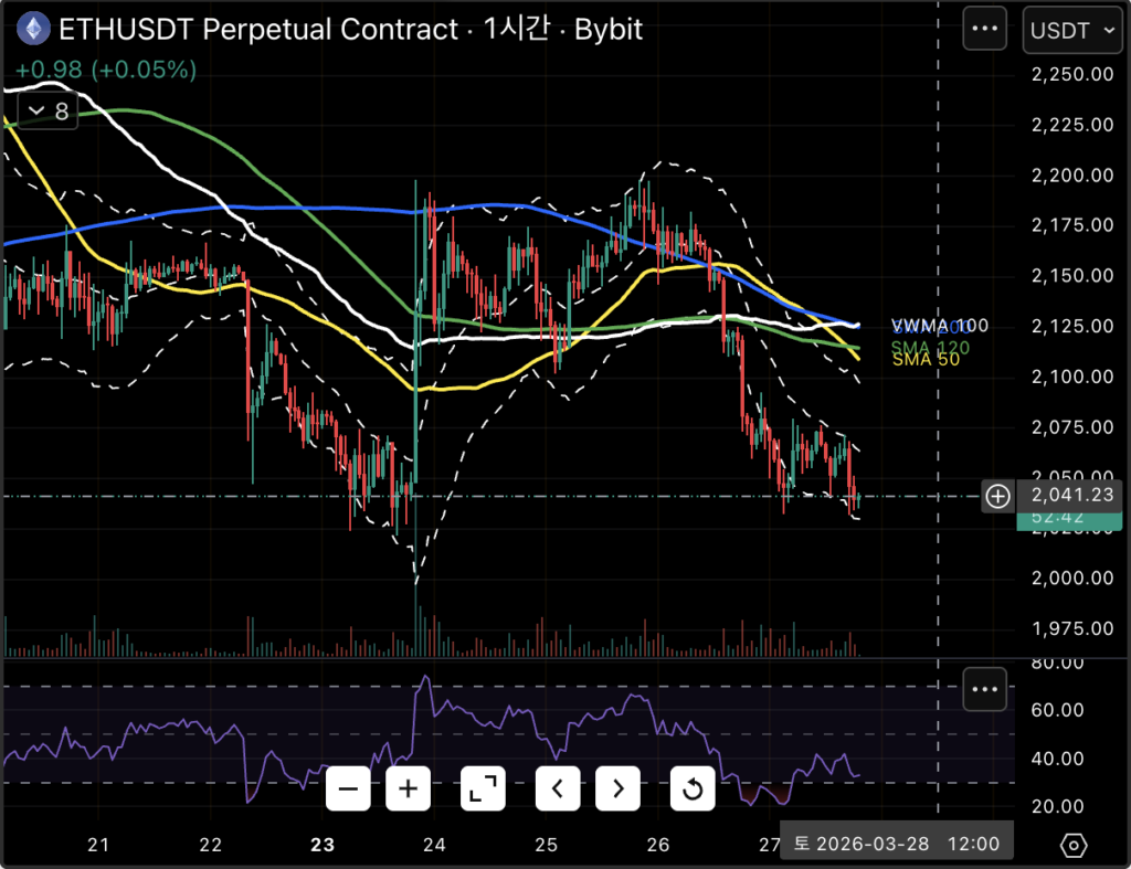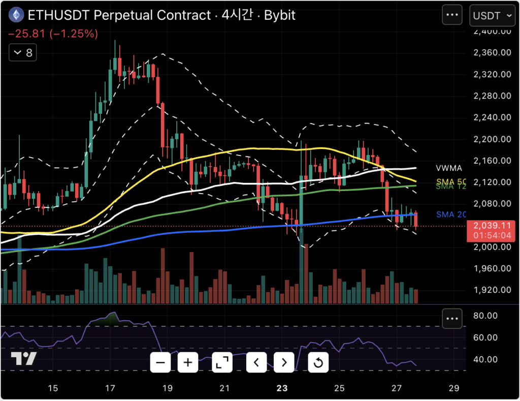 이더리움 4시간 봉입니다. 당연히 이평선 구조는 무너졌고 SMA 200도 결국 무너졌습니다. 결국 보이는 구조는 하나도 없고요. 그냥 기다리는 수 밖에 없어 보이네요.