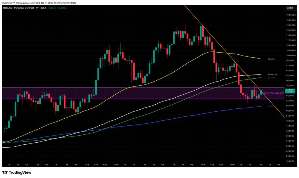 • 가격대는 74087달러 부근입니다. 여기를 집중해서 보시죠