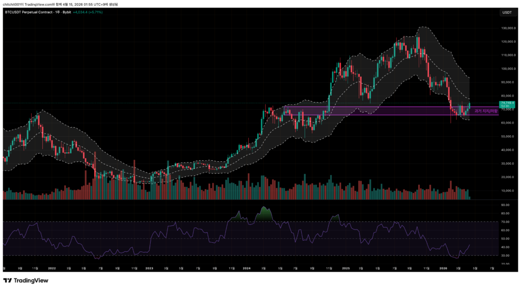 - 보라색으로 칠한 과거 지지/저항 구간이 있는데요. 오랜 기다림 끝에 여기를 상방으로 뚤어줬습니다.